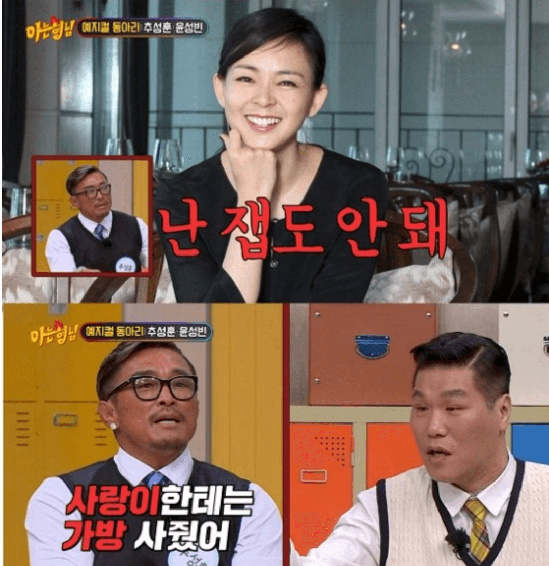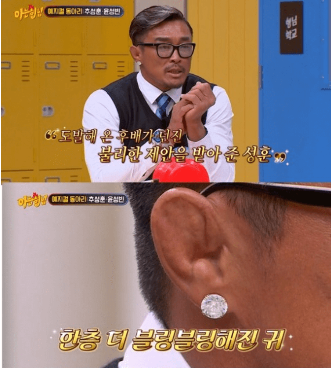 그러나 추성훈은 "아. 그래?"라며 당황했고, 이어 "솔직히 말하면 출연료를 받긴 했다. 근데 경비 때문에 마이너스였다"라고 설명했다. 서장훈은 추성훈에게 아오키 신야 선수와의 원챔피언십 경기를 언급하며 "시합에서 이기면 본인을 위한 선물을 한다고?"라고 물었다. 추성훈은 "이 시합 때 너무 잘했으니까 보너스도 따로 줬다. 보너스 돈으로 귀걸이도 샀다"며 다이아 귀걸이를 보여줬다. 김희철은 "보너스를 많이 주진 않았나 보다. 한쪽만 샀네?"라고 말했고, 추성훈은 "하나씩 사야지 이거 좀 비싸서"라고 답해 웃음을 자아냈다."아내는 안 사줬냐"라는 물음에 추성훈은 "아내는 나보다 훨씬 돈 많이 번다. 난 잽도 안된다"라고 밝혔다. 이어 "사랑이한테는 가방 사줬다"라고 이야기했다. 한편 추성훈은 2009년 모델 야노시호와 결혼해 슬하에 딸 추사랑을 두고 있다. 슈돌 나오는 추성훈 이제 예능 등장 야노시호 아내 겸 추사랑 함께 포스팅 감사합니다.
